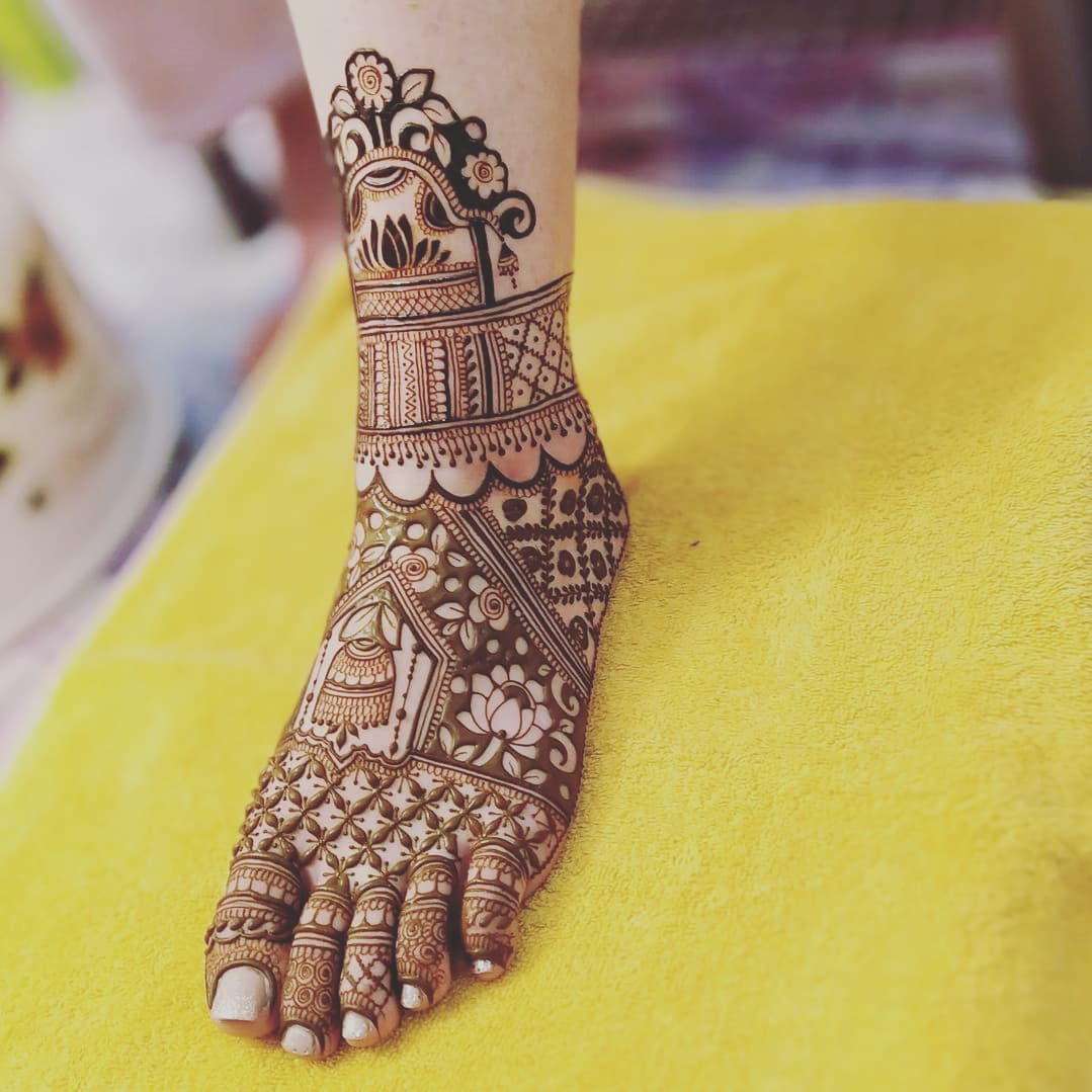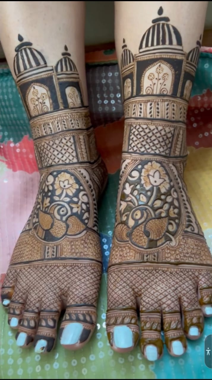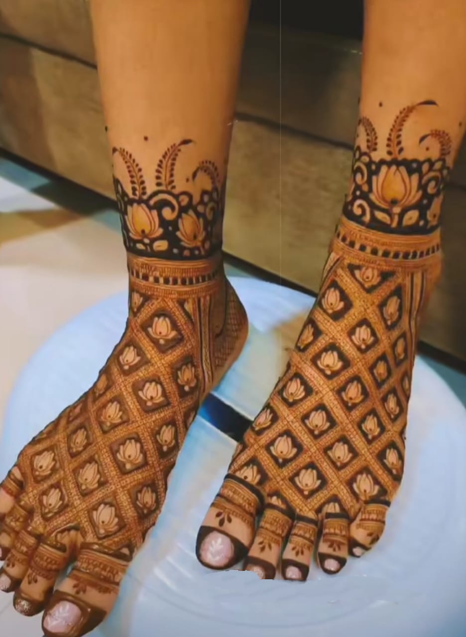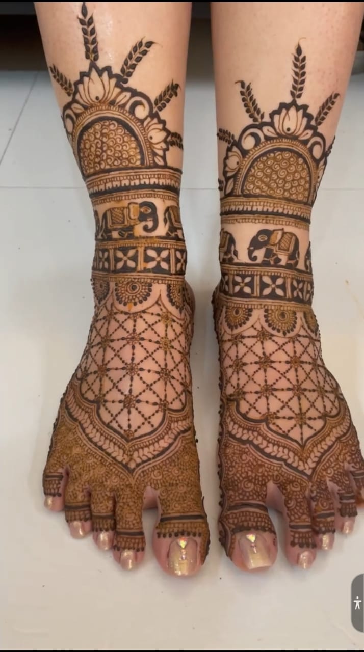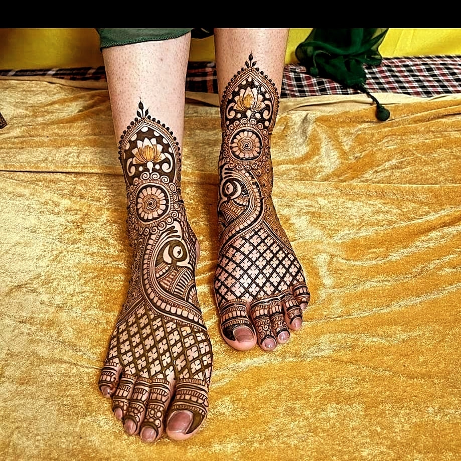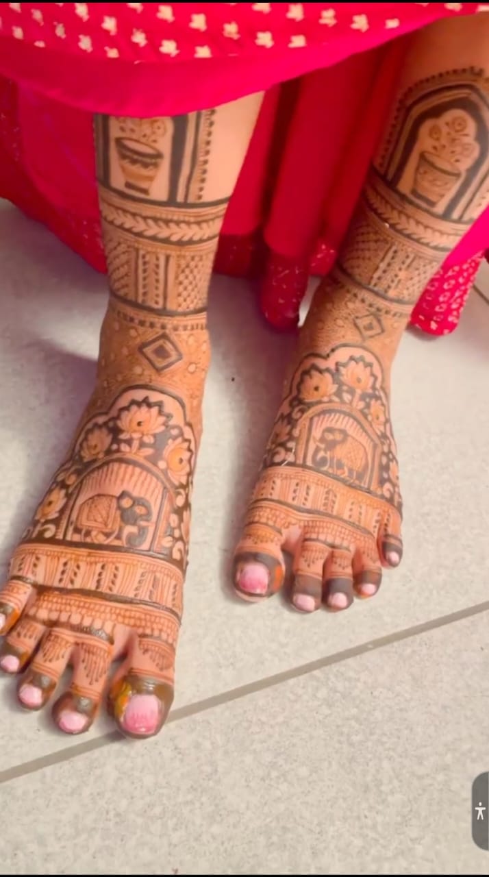Henna Artists in Delhi, Top Henna Artist in Delhi, Bridal Henna Artists with prices in Delhi, Bridal Henna Artists near me. The beautiful bride-to-be adorns her hands and feet with striking designs made out of henna. As per the traditions, even the groom applies a bit ofmehendi on his hands as well as feet. The entire ceremony is a fun-filled event with every family member and close friends of the bride and the groom being a part of it. Bridal Mehandi Designs (in Delhi) are really beautiful, stunning and make the brides hand or feet look beautyfull. Wearing Mehandi during the Marriage is not only a part of the traditional custom values but today even the most ultra-mod girl would never forget to deck her hands and feet with Mehandi designs (in Delhi) on her wedding day because the design intricacies look so very gorgeous that it suits the glamorous occasion of the wedding and has indeed gelled well with the style quotient of the modern girls. Generally, Bridal Mehandi design images will have intricate images with some specific symbols such as, Kalash, Swastika, Shehnai, Bride, Groom, Dooli etc which are all symbols of the auspicious wedding ceremony. These designs (in Delh) are really beautiful and attention grabbers with all the stone stickers, glitters and colorful embellishments.